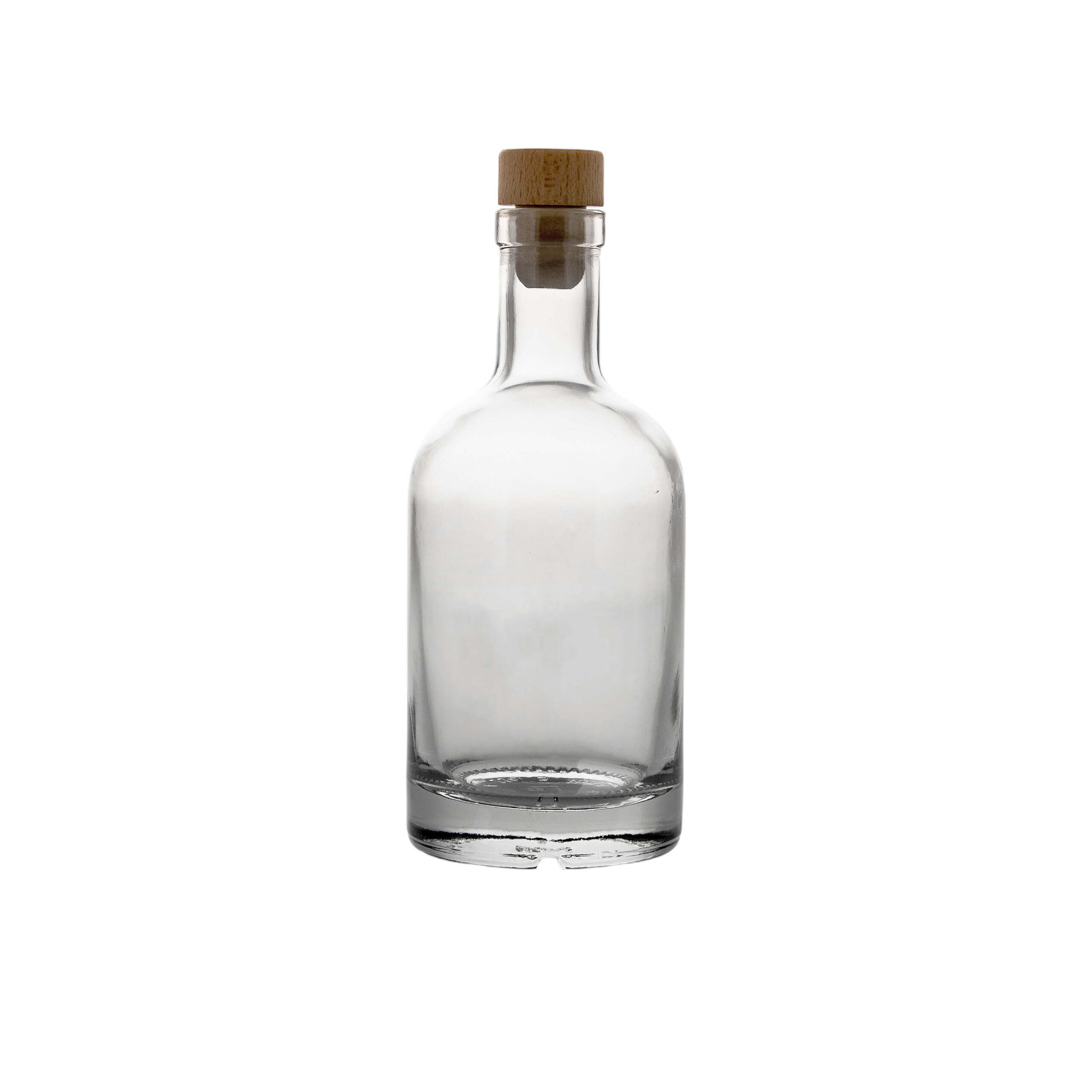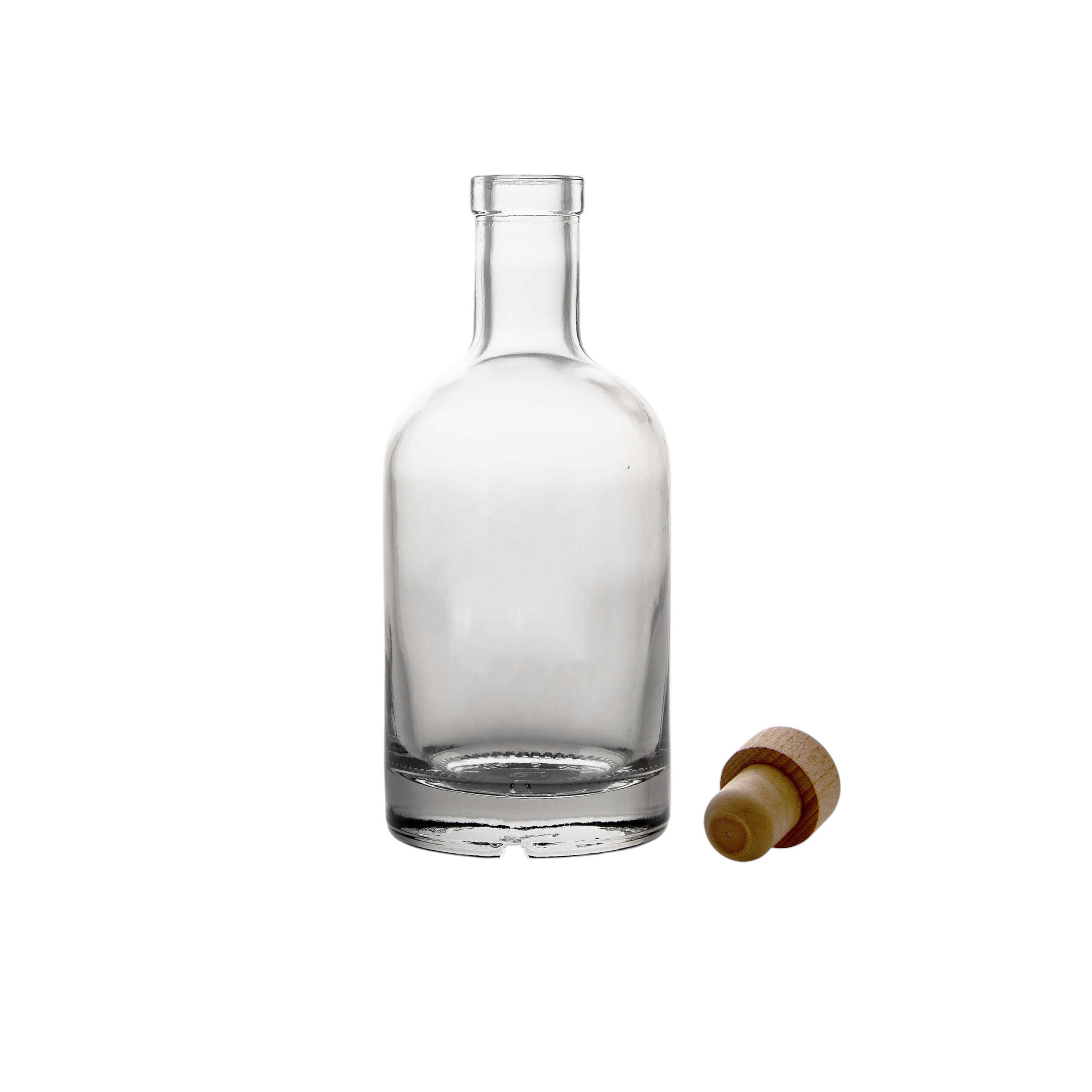 Flaskan erbjuder en stilren silhuett med bred botten, tydliga kanter och en generös hals som gör den idealisk för kork- eller träkorksproppar. Den är lika lämpad för exklusiva premiumvarumärken som för småskaliga destillerier som vill höja sin produktprofil.